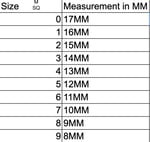 Size Large Square: 0, 4, 3, 5, 7 (Thumb-> Pinky)